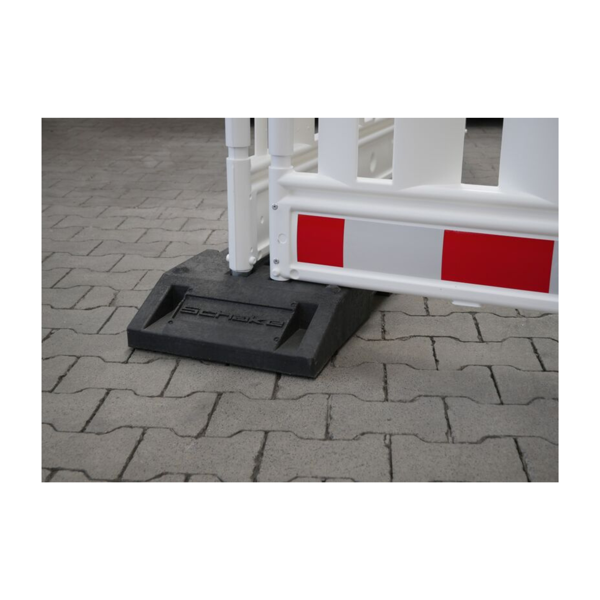 Robuste Fußplatte aus Recyclingkunststoff für den Einsatz im Straßenbau gemäß ZTV-SA. Geprüft nach TL-Aufstellvorrichtungen, Standsicherheitsklasse K1. Kompatibel mit gängigen Baken und Schrankenzäunen.