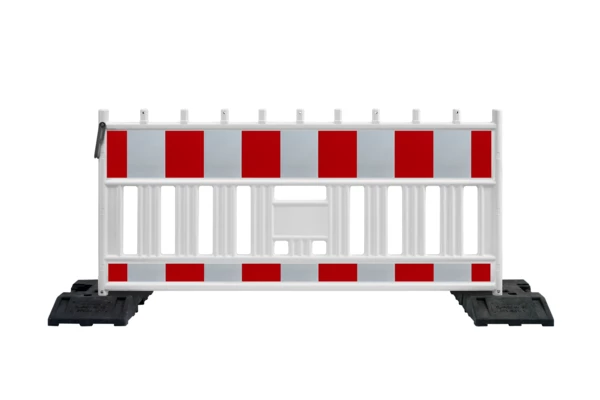 Das Absperrschrankengitter FUTURE besteht aus UV-stabilisiertem, hochfestem Kunststoff (HDPE) und ist geprüft nach TL-Absperrschranken 97 sowie den Anforderungen der ZTV-SA. Mit einer Länge von 2,15 m und durchgehenden feuerverzinkten Einsteckrohren Ø 42 mm bietet es eine besonders hohe Stabilität. Ein ergonomischer Handgriff in der Mitte sorgt für komfortables Handling. Neun fest angeblasene Lampenstutzen und der bruchsichere Überwurfbügel ermöglichen den sicheren Einsatz auf Baustellen. Die Ausführung verfügt über eine reflektierende RA2-Folie in rot/weiß.
