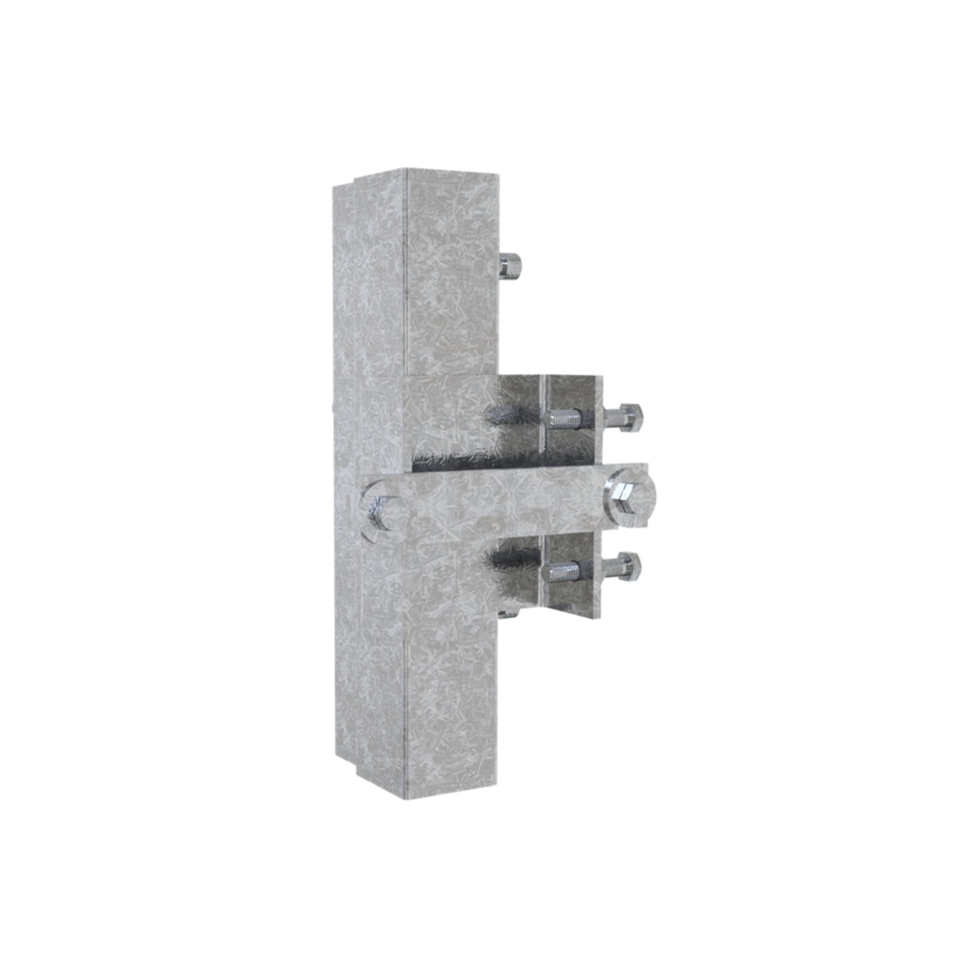 Robuste Halterung zur Aufnahme von 40 x 40 mm und 60 x 60 mm Schaftrohren. Mit einem verschraubten Bügel wird die Leitplankenhalterung sicher am Pfosten der Schutzplanke (Super-Rail, Sigma, IPE 100) befestigt. Ideal für temporäre Verkehrslenkung bei Baustellen im Straßenbau.