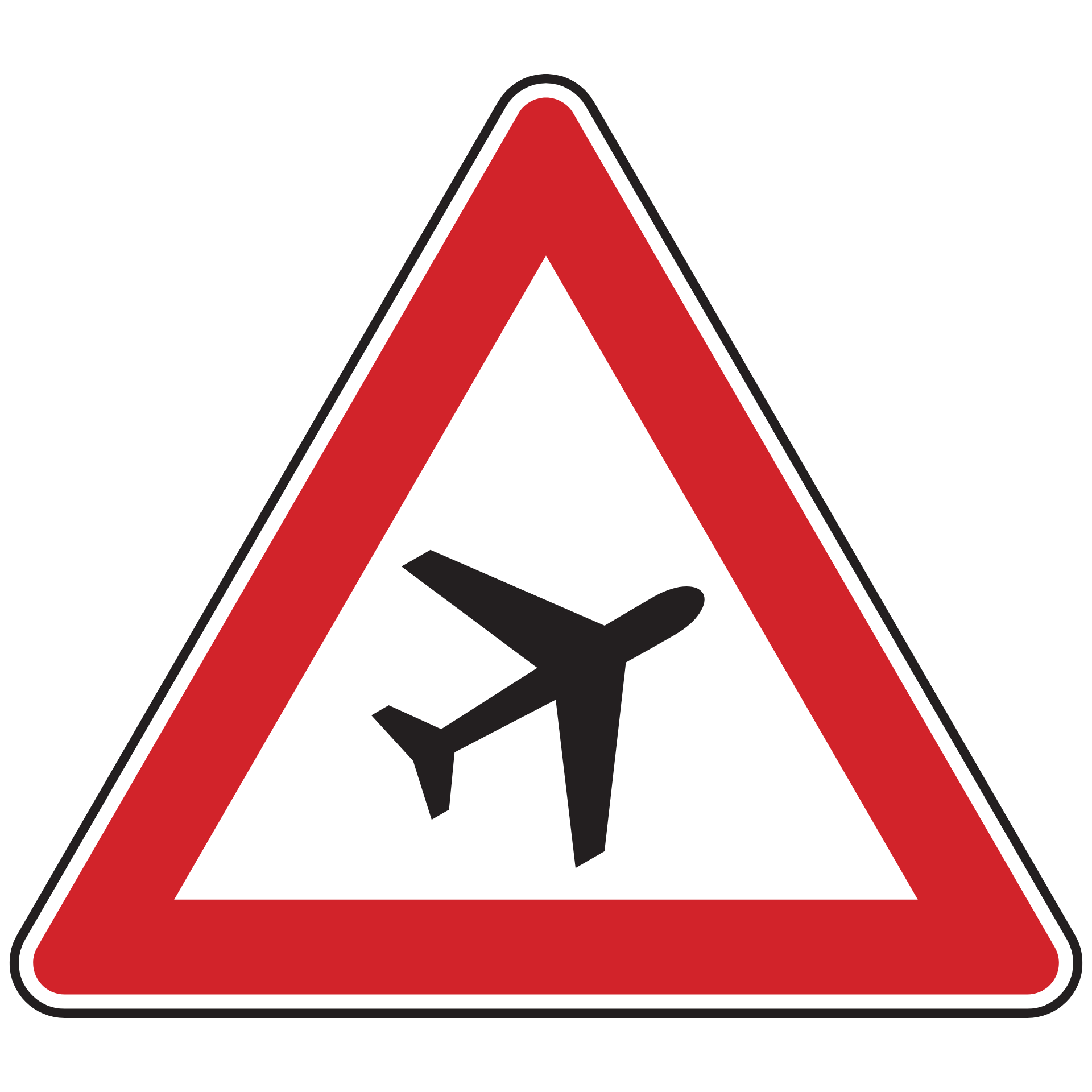 Dieses Verkehrszeichen warnt vor plötzlich auftretendem, kreuzendem Flugverkehr. Es wird auf Straßen mit schnellem Verkehr eingesetzt, die in der Nähe von Flugschneisen verlaufen oder in geringer Höhe überflogen werden. Das Zeichen steht in diesem Fall am linken Fahrbahnrand.