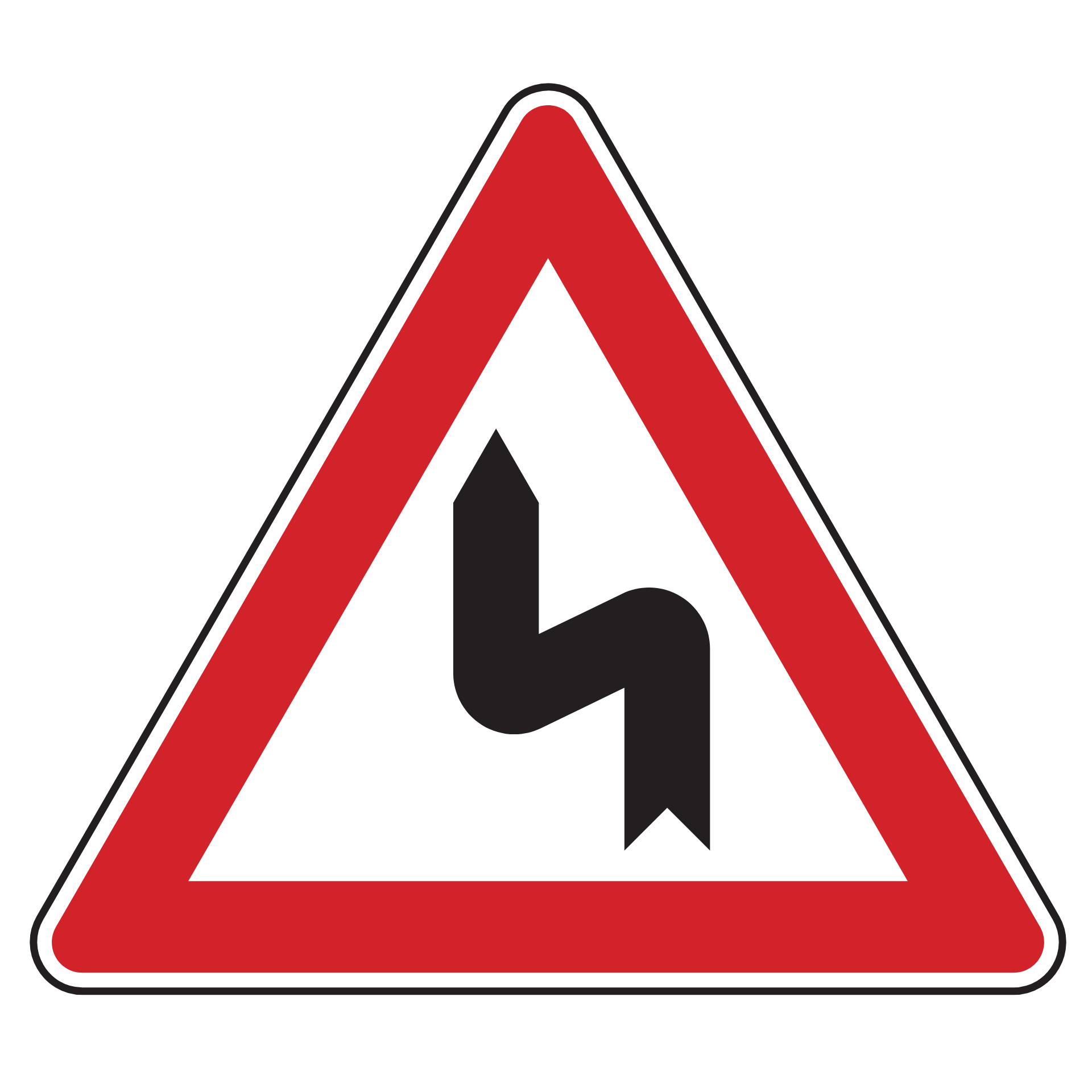Dieses Verkehrszeichen weist auf eine Doppelkurve im weiteren Straßenverlauf hin, bei der die erste Richtungsänderung nach links führt. Die Gefahrenstelle entsteht durch zwei oder mehrere unmittelbar aufeinanderfolgende Kurven, die unerwartet eng und lang sein können. Da das Warnzeichen allein nicht ausreicht, um den Verkehrsfluss sicher zu regeln, wird es häufig durch Richtungstafeln ergänzt.