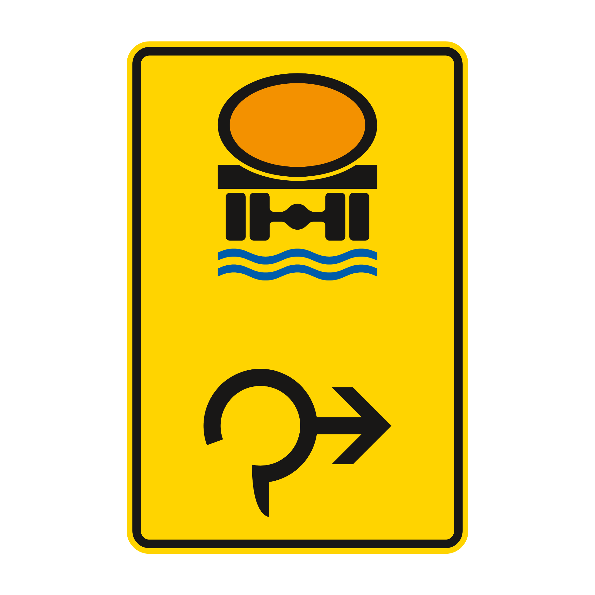 Verkehrszeichen „Vorwegweiser für Fahrzeuge mit wassergefährdender Ladung im Kreisverkehr, rechtsweisend“ – VZ 442-26